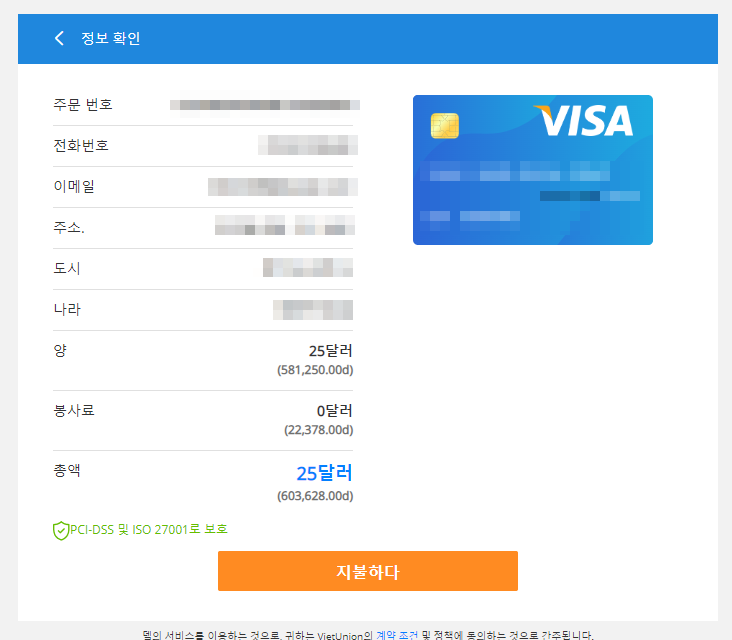 역시나 한번더 입력한 내용을 확인하고 25$를 결제 진행합니다.