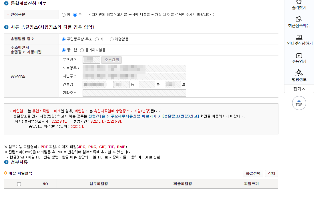 타기관의 폐업신고를 동시 제출하는 경우 필요시 신청하시면 되겠습니다.
