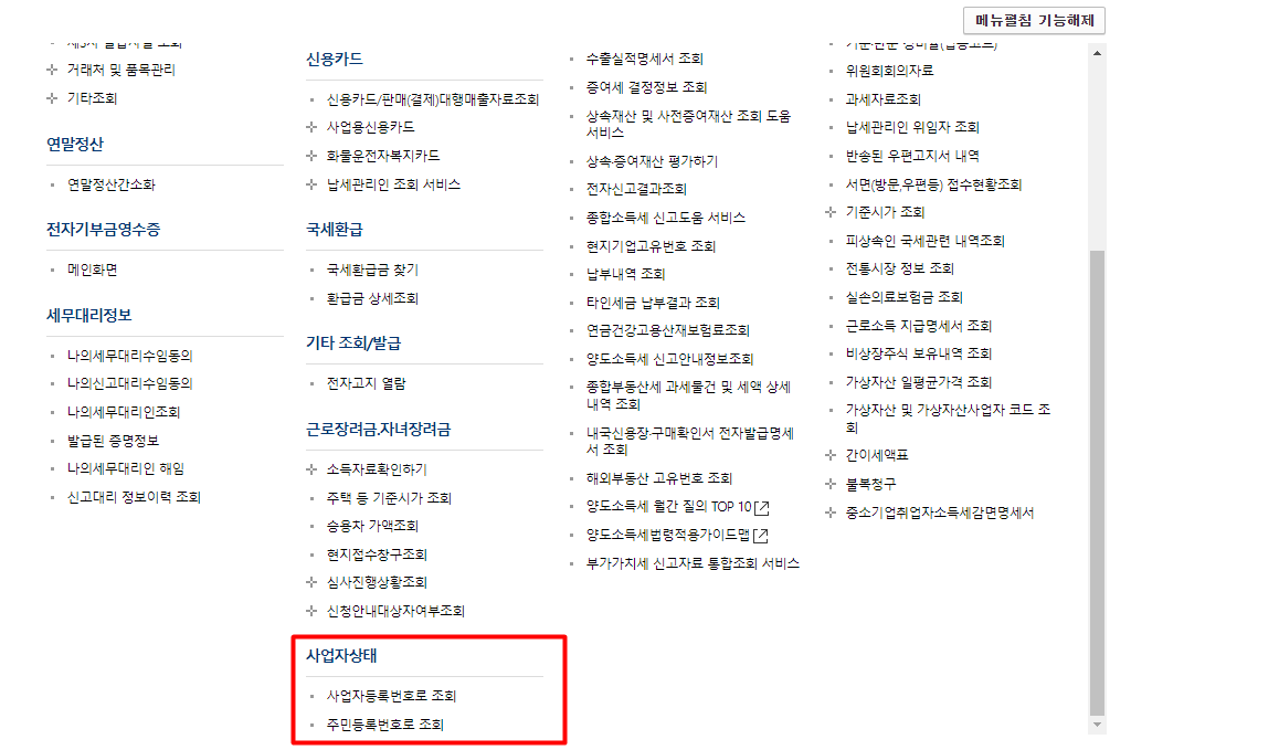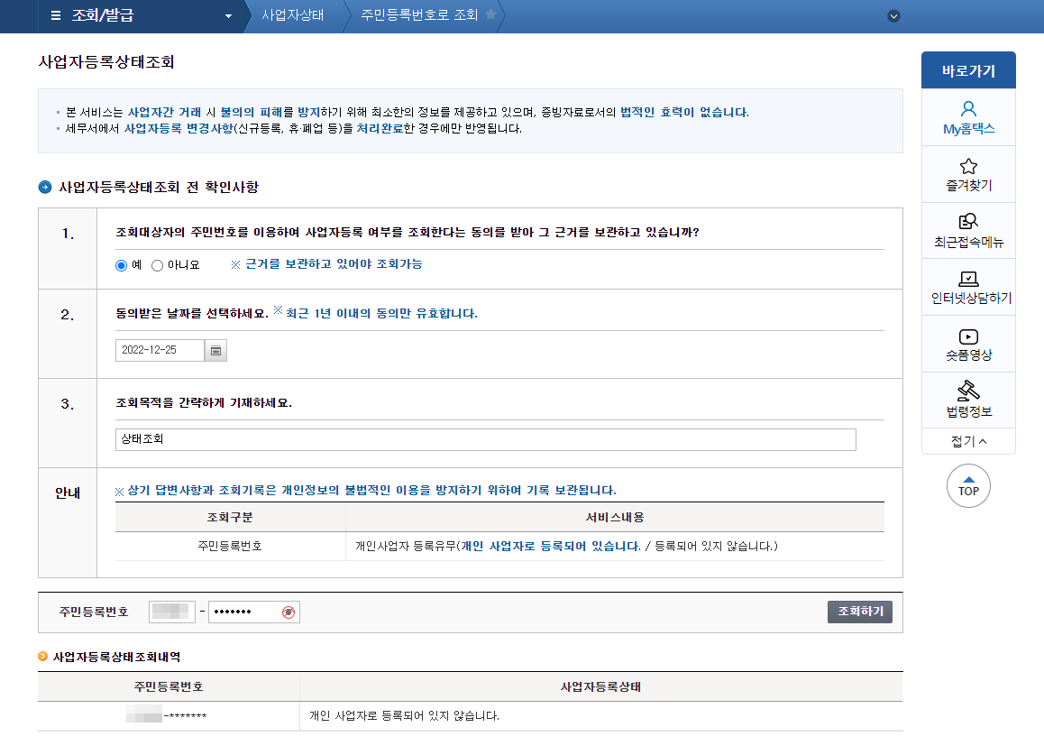 조회/발급 - 사업자상태 - 사업자등록번호로 조회