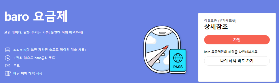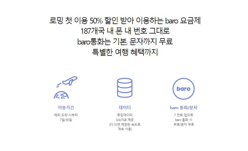 해외로밍 baro (바로요금제)를 선택하려하니