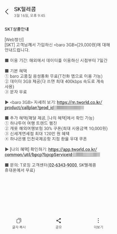 해외로밍 T로밍이 낫지 않겠나 싶었죠
