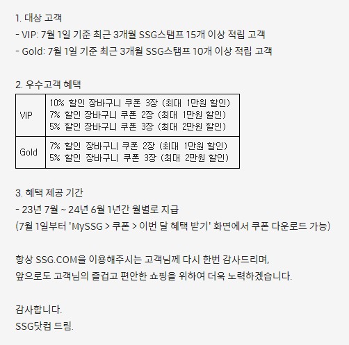 SSG를 이용하시는 분들이라면 4월, 5월, 6월 실적 잘 챙겨서 1년간 VIP 유지하시길 바랍니다.