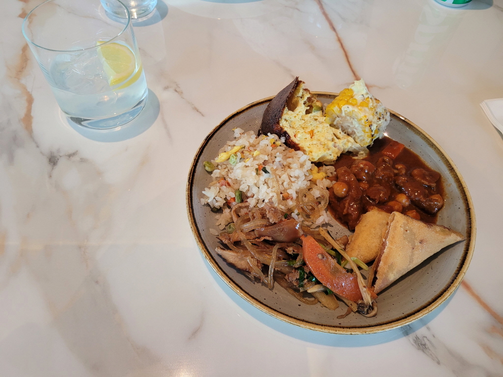 잡채, 커리사모사, 치즈옥수수구이, 볶음밥, 비프스튜