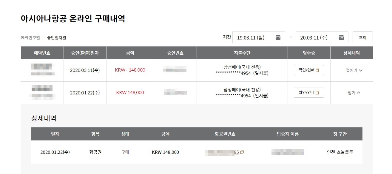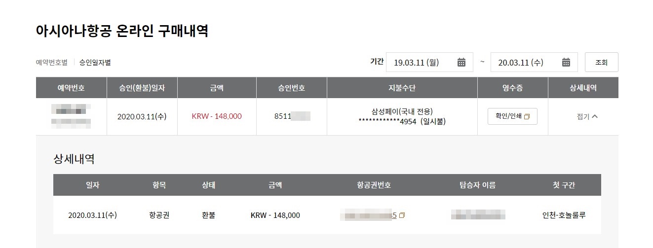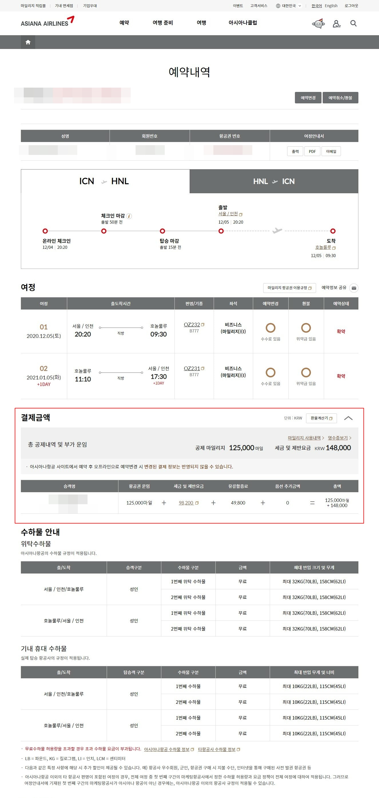 오늘은 아시아나 마일리지 항공권 예약한 걸 취소 환불해보려고 합니다.