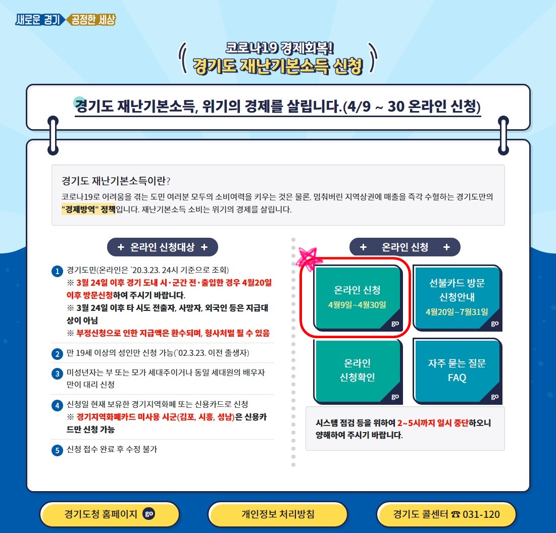 어제(04/09) 15시부터 경기도 재난기본소득 신청이 오픈되었습니다.
