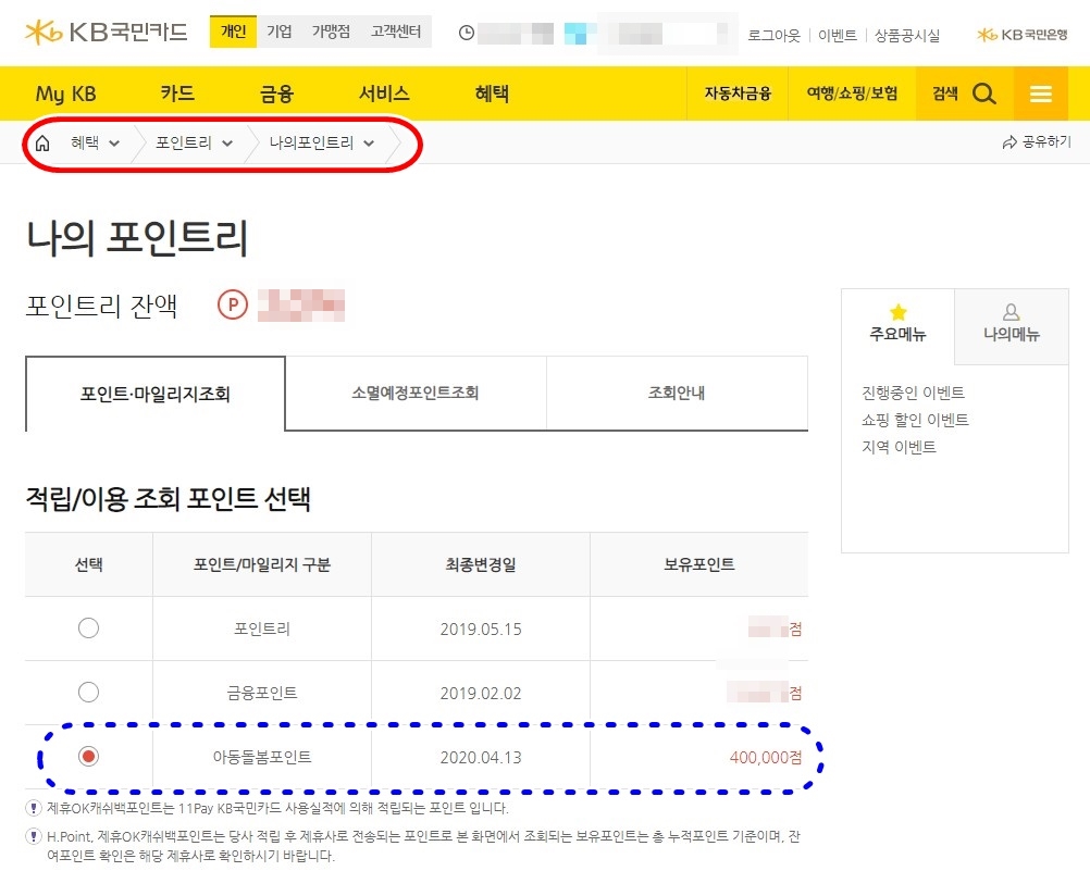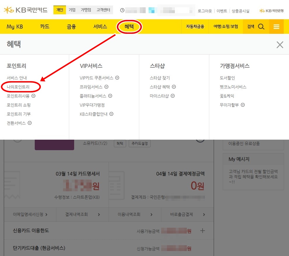 2) 혜택 → 나의포인트리 클릭
