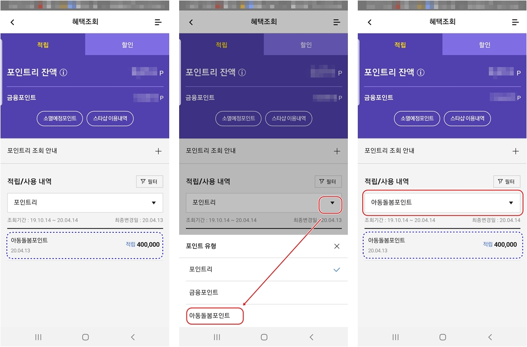 4) 혹시 안보이신분은 포인트 유형을 "아동돌봄포인트" 클릭