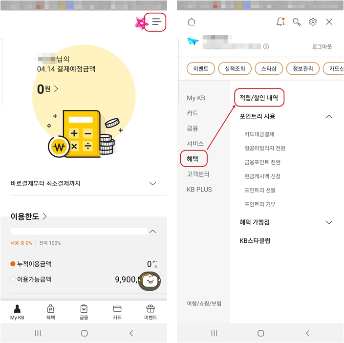 2) 혜택 적립/할인 내역을 클릭